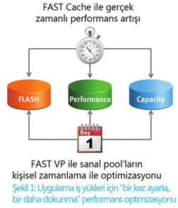 FAST Suite, müşterilerin FLASH 1st stratejisi izlemesini sağlayarak performansı artırır, depolama verimliliğini üst düzeye çıkarır. FAST suite ve az sayıda Flash sürücü kullanımıyla birlikte FLASH 1st stratejisi, veri ihtiyaçlarına göre en makul sürücü biçiminden veri sıralama ve gönderme işlemlerini gerçekleştirerek depolama maliyetlerini düşürür, en önemli uygulamalarınızın performans düzeyini artırır. Müşteriler; blok ve dosya sistemlerinde dinamik olarak aktif verileri yüksek performanslı sürücülere, fazla aktif olmayan verileri ise yüksek kapasiteli sürücülere bir gigabayt'lık artışlarla aktaran prensipler kullanarak veri sıralamasını kendileri belirler. Kararlı olmayan ve yüksek kaynak gerektiren iş yüklerinde iki terabayt'a kadar yükseltilebilen önbellek sayesinde veriler gerektiği sürece en yüksek performanslı Flash sürücülerden sunulur. FLASH 1st stratejisiyle müşteriler asla performans veya maliyet için ödün vermek zorunda kalmazlar.
